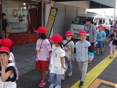 5月16日(火)3・4校時、1年生は生活科の「がっこうのまわりをあるいてみよう」の学習で校外に出かけました。南門を出て西に進み、アタックスの交差点で右折し、ローソン前の細い道に入って学校まで戻りました。その間に「カーブミラー」や「歩道橋」など学校の行き帰りの安全のために大事なポイントについて、先生といっしょに確認することができました。