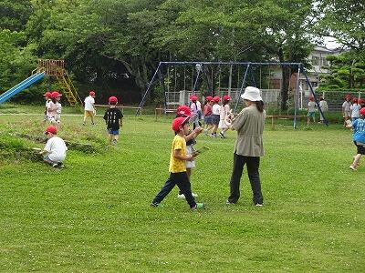 5月29日(月)1週間のスタートです。今週はお天気が今ひとつの予報です。3校時、1年生は生活科で”写真カードにあるものみつけ”に挑戦していました。走ってチョウを追いかけたり、しゃがみ込んで草むらをのぞき込んだりと楽しそうに活動していました。フラワーランドで草花や虫など、いろいろな発見があったようです。