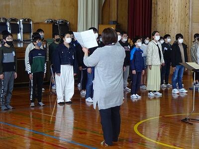 3月23日(金)本日、学年最後の1日です。2校時、体育館に1~5年生が集まって修了式を行いました。初めに1年生と3年生の代表児童が学年の振り返りやがんばったこと、新しい学年での目標をとても立派な態度で発表してくれました。そのあと、校長からは「春休みも"あたりまえのこと、やるべきこと"をしっかり続けて、ワクワクした気持ちで4月7日を迎えよう」という話をしました。その後、5年生の伴奏で校歌を斉唱しました。久しぶりに子どもたちみんなの歌声が体育館に響きました。最後に、春休みの過ごし方について、担当の先生から話がありました。令和4年度、無事終了です。保護者の皆様、地域の皆様には本当にお世話になりました。明日から4月6日まで13日間の春休みです。引き続き、ご家庭、地域での子どもたちの見守りをよろしくお願いいたします。