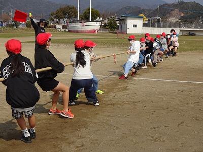 3月10日(金)今日は子どもたちが楽しみにしていたお別れ集会・遠足の日です。前半は、各学年と6年生が「ミニ運動会」で交流しました。1年生と2年生は「玉入れ」、3年生は「台風の目」、4年生は「障害物リレー」、5年生は「綱引き」を6年生といっしょに楽しみました。計画そして進行をしてくれた5年生の運営委員会の皆さん、ありがとうございました。