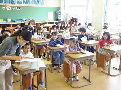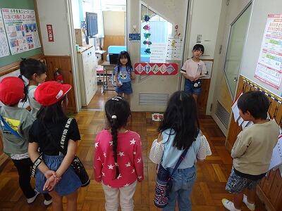 5月18日(木)2校時、これからの梅雨・台風シーズン時の風水害に備えて、児童の安全な下校並びに迎えの保護者への引き渡しができるように、全校児童が地区ごとに分かれて集まって確認を行いました。それぞれの教室で各地区の1生から6年生までが顔合わせをし、同じ地区のメンバーを確かめることができました。今後、風雨が強くて下校時に心配がある場合は地区ごとの集団下校を行います。その際は学校メールでお知らせしますので、保護者の皆様の家庭でのご対応をよろしくお願いいたします。