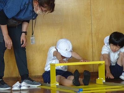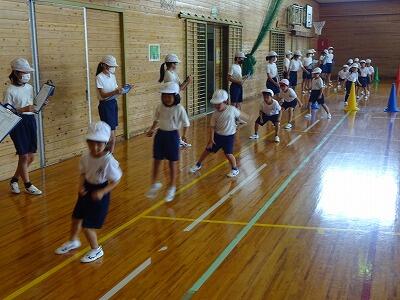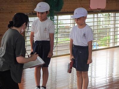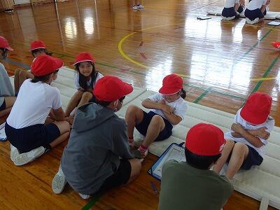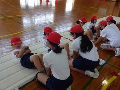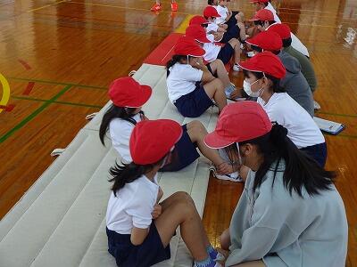 5月23日(火)振替休業日明けの3校時、体育館で1年生の体力テストを6年生がサポートしていました。この時間、1年1組がチャレンジしたのは「上体起こし」と「反復横跳び」です。がんばる1年生の記録をカウントしてカードに記録するのが6年1組の役目です。時折、励ましの声かけもしながら、やさしくサポートしていました。あさって25日には1年2組のサポートを6年2組が担当してくれる予定です。