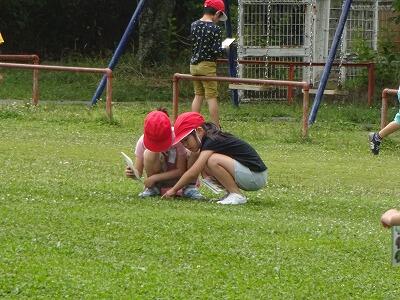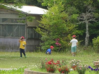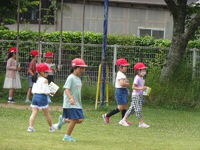 5月29日(月)1週間のスタートです。今週はお天気が今ひとつの予報です。3校時、1年生は生活科で”写真カードにあるものみつけ”に挑戦していました。走ってチョウを追いかけたり、しゃがみ込んで草むらをのぞき込んだりと楽しそうに活動していました。フラワーランドで草花や虫など、いろいろな発見があったようです。