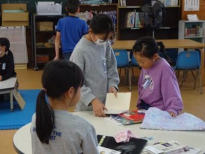 11月の生活目標は「読書をしよう」です。それに伴って「読書祭り」開催中です。図書委員会による「図書クイズ」、お昼の放送での「新書紹介」、イベント参加児童には「もう一冊借りられるカード」や「手作りしおり」プレゼント、本の中に隠された「図書委員会特製しおり」がゲットできるなんてものもあります。先生方の「おススメの本」の紹介もあります。この機会にたくさんの本を手にとって、読書に親しんでほしいです。