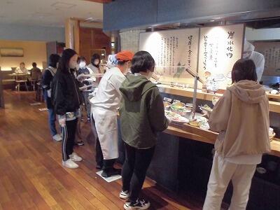 2日目の昼食は、宮崎観光ホテルでビュッフェランチです。担当の方から料理を取る際の手順やマナーについてお話を聞いた後、それぞれに自分の食べたい料理をお皿に盛りつけていました。和洋中のごちそうが並んでいて、迷ってしまう子どもたちも。デザートもたくさんあって、ソフトクリーム大人気でした。そして、最後の目的地、フェニックス自然動物園です。予想どおり?乗り放題の遊園地にまっしぐらの子どもたちが多数でしたが、思う存分楽しんでいました。延岡市内の3校が同じ時間帯にいたので、売店は大行列でした。15:20、一路延岡へ。バスの中ではそれぞれガイドさんとレクリエーションで盛り上がりました。川南PAで解散式をして、今回、お世話になった方々にお礼の言葉を述べました。17:00過ぎ、無事に学校到着、たくさんの方々が出迎えてくださいました。保護者の方々が掲げてくださった感謝の言葉書かれた横断幕に、ガイドさんが感激されていました。ありがとうございました。2日間の修学旅行、とても立派な態度で過ごした6年生、さすがでした。