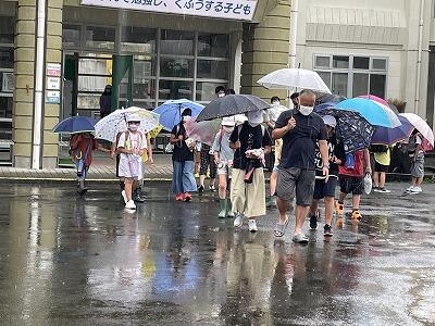 7月4日(月)台風4号接近に伴う強雨のため、給食終了後、全校一斉に地区ごとに下校させます。14:00までに児童が学校から出るのを完了する予定です。下校後は、安全のために自宅で過ごすように指導しています。中学校の部活動中止に伴い、スポーツ少年団の活動も中止をお願いしています。児童の安全のため、保護者の皆様のご理解ご協力をお願いいたします。