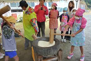 もちつき大会は、自分たちで田植えをし、稲刈りをしたもち米をつきました。ついたおもちをおいしく頂きました。お米を育てるお世話をしてくださった島田さんや、準備をしてくださったお家の方々にも感謝したいです。