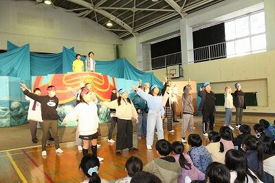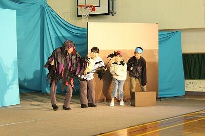 今回は、4年生が事前に演劇のワークショップを行い、本番でもコウモリ役や歌・ダンスで参加しました。プロの俳優の皆さんと一緒に演じることができとてもよい経験となりました。