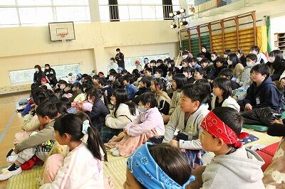 子どもたちは、登場人物のセリフや動きだけでなく、舞台装置(回り舞台)や背景画などに目と心を奪われていました。少し寒かったのですが、その寒さも忘れるくらい夢中になっていました。