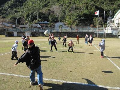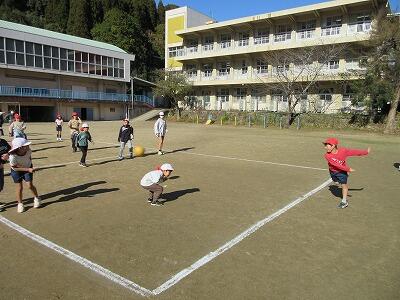 これは、運営委員会の子どもたちが企画したもので、縦割りの班でのドッジボール大会でした。いろいろな学年の友達と仲間になり、ボールを投げたりよけたりと楽しく遊ぶことができました。