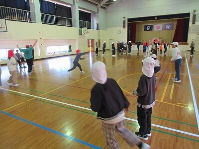 その後、「ダンシング玉入れ」をしました。通常の玉入れに加え、音楽が変わったらダンスを踊るというものです。笑い声があふれるステキな交流会となりました。ダンスの中には「ばんば踊り」もあり、全員で楽しく踊ることができました。最後は子どもたちが花道を作ってお見送りしました。