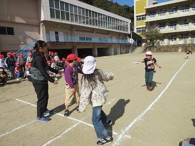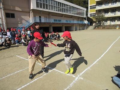 12月にはドッジボールを行いましたが、今回は全員でのリレーでした。運動会の赤団・白団に分かれて全員でバトンをつなぎました。ものすごい盛り上がりで、北川小の子どもたちの仲の良さや素晴らしさをあらためて感じました。企画した運営委員会の子どもたちのがんばりにも感心しました。