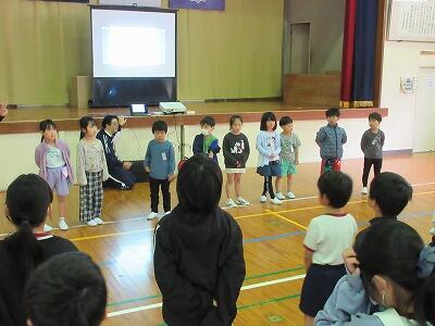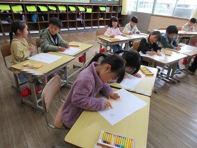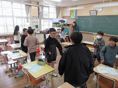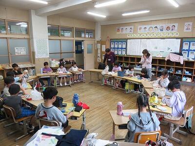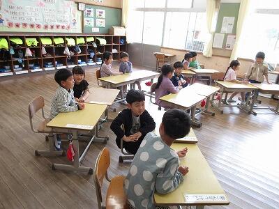 昨年度は、昼休みに希望する子どもたちが集まって活動していました。本年度は、全ての子どもたちに交流をさせたいと考え、授業の中に組み入れることにしました。