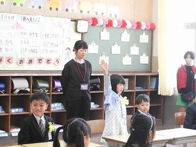 校長からは、一年間の目標を立てることを話しました。「自立(自分でできることをふやす)」と「貢献(だれかの役に立つ)」という視点で考えることを提案しました。卒業を控える6年生には、「惜しまれる6年生になろう」とエールを送りました。また、春の七草を紹介し、暗記にも挑戦させました。多くの子がその場で覚えたようです。