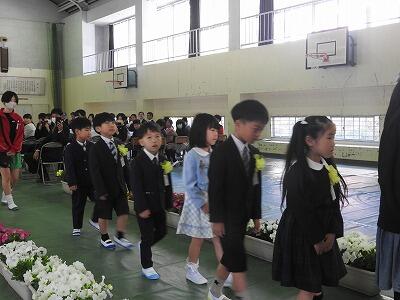 始業式では、4年生と6年生の代表が作文を発表しました。4年生は、学期末のマスターテストに向けて勉強をがんばること、大きな声でハキハキと発表することを目標としているとのことでした。6年生は、国語の文章問題が得意になるように読書をがんばること、大きな声であいさつをすること、中学校で勉強と部活を両立させることをがんばりたいと話しました。