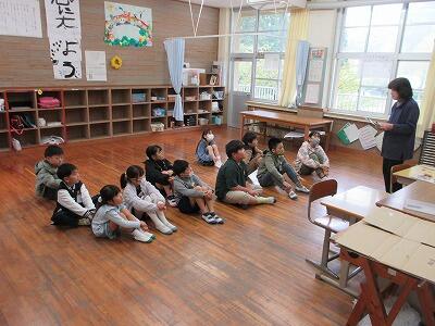 加えて、地域の方にも協力をお願いしています。5月23日には、お二人の方においでいただきました。どちらも学校の先生をされていた方で、子どもたちの心をぐっとつかむ素晴らしい読み聞かせをしていただきました。