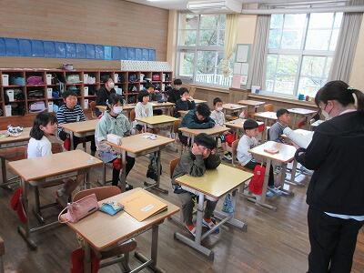 1月7日の始業式のあとに地区児童会を行いました。住んでいる地区ごとに分かれ、担当の先生と一緒に登下校の安全について話し合いました。北川小児童は、徒歩・スクールバス・宮崎交通バス・保護者送迎と多様な登下校の方法がありますので、それぞれに合わせた指導を行っています。徒歩やバスでの登下校は、異学年交流の場としても意義があります。