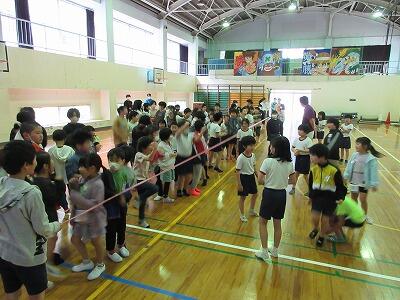 第1回目となった5月21日には、3・4年生が参加しました。地域の方においでいただき、体育館で風船バレーを楽しみました。子どもたちにとっても初めての体験でしたが、慣れてくると歓声を上げながらボールを追いかけていました。始まる前にはチーム内で自己紹介もしました。地域の皆さんとの距離がぐっと近付いた交流会でした。