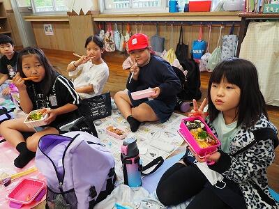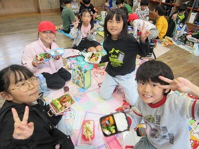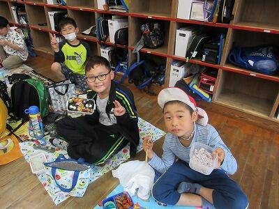 雨の中でのAコープでの買い物体験と体育館でのレクリエーション、教室でのお弁当を楽しみました。