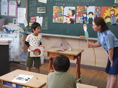 1・2年生では、友達に誘われて万引きをしてしまった主人公の話を聞いて、登場人物の気持ちを想像したり自分だったらどうするかを考えたりました。軽い気持ちでも「窃盗罪」という罪になることを学びました。