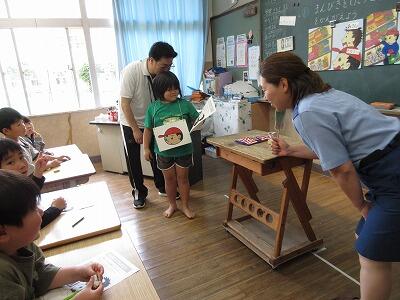 1年生がお店屋さんごっこをしていました(1/22)。算数のお金の学習の延長で、図工と組み合わせた学習です。