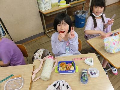 飲んでみると・・・「おいしい」「うまい」「最高!」と大好評でした。好きな献立の一つに入るのではないでしょうか。私(校長)も子どもの頃から大好きですが、私たちのころは牛乳ビンだったのでもっとおいしかった気がします。気のせいかもしれません。写真は1・2年生です。