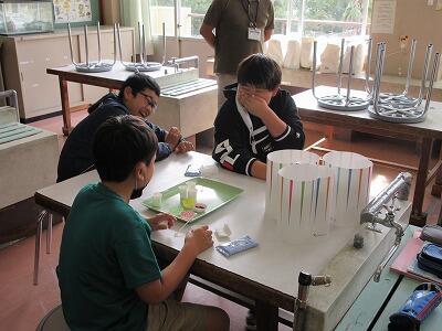 はじめに椎茸について学びました。宮崎県は椎茸の特産地であることや、椎茸に含まれる栄養素、干し椎茸の使い方などをクイズをまじえて教えていただきました。かつて北川地域はかなりの生産量を誇っていたそうです。また、県北は干し椎茸の生産が大部分を占めているそうです。さらに、干し椎茸でとった「だし汁」の試飲や干し椎茸をパックにつめる体験もさせていただきました。