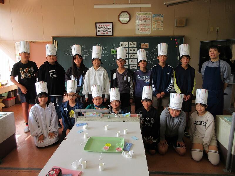 次に家庭科室で調理実習を行いました。作ったのはピザ風の干し椎茸料理です。椎茸を炒め、その上にピザソースをぬり、ベーコンやチーズ、ピーマンを乗せて蒸し焼きにしました。試食したところ、チーズがとろけて椎茸のおいしさが際立つ絶品でした。少し椎茸が苦手な子も(担任の先生も)おいしそうに食べていました。とてもよい体験ができました。