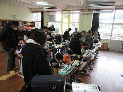 午後5時、予定の時間ぴったりに北川小学校へ到着し、保護者の皆さんの出迎えを受けました。
