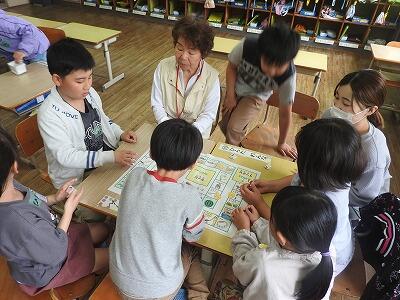 本年度最初となった昨日(4/24)は、6名の方に来ていただきました。会場となった1・2年教室とにじいろ図書館で子どもたちと一緒にすごろくで遊んでいただきました。