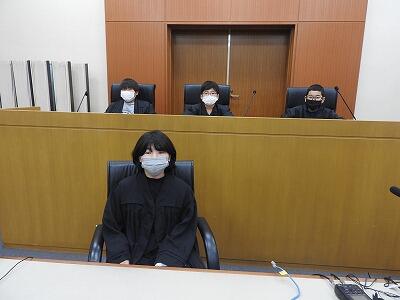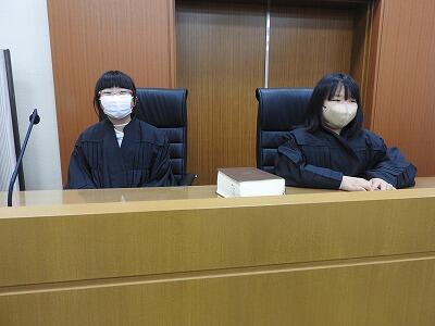 裁判所についての説明を受けた後、実際に裁判が行われる法廷に入れてもらい、裁判の雰囲気を体験することができました。判事さんなどの制服を着せてもらった子もおり、司法の世界に興味をもつことができたのではないでしょうか。とてもよい学習ができました。裁判所の皆様、ありがとうございました。