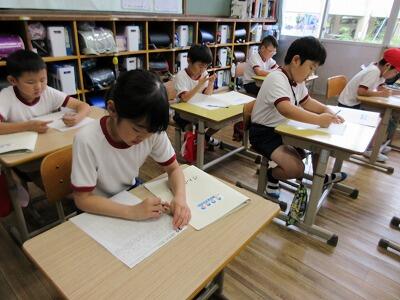 写真はある日の4年生の様子です。集中して鉛筆を走らせる姿に感心しました。
