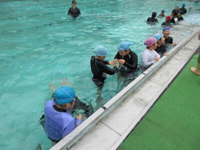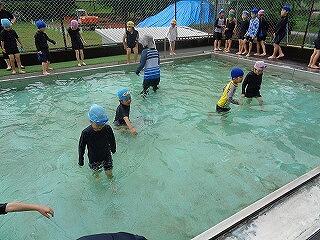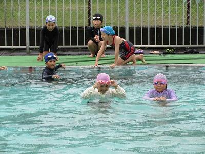水に慣れるために、水に頭をつけたりプールを歩いたり宝探しをしたりしました。先生方の指示をよく聞いて、とても楽しい水泳の時間になりました。