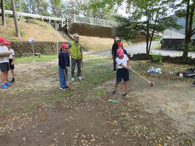 11月5日(火)のクラブ活動で、屋外スポーツクラブの子どもたちがグランドゴルフを体験しました。