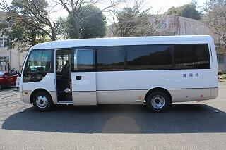 学校にスクールバスが3台あります。そのバスを使って十数名の児童が登校していますが、一番古くなったバスが新型のスクールバスに代わりました。シートにはビニールが敷いてありました。