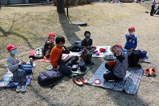 お別れ遠足は、近くの北川運動公園に出かけました。大きなグランドで鬼ごっこをしたりボール遊びをしたりしました。鬼ごっこでは、5年生が鬼になってほかの学年を追いかけていました。先生方も鬼になって子どもたちを追いかけていました。