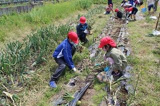 たまねぎは、ほるというよりも茎をもって抜くという作業でした。意外とぬきやすくひとりでたくさん抜いている児童もいました。