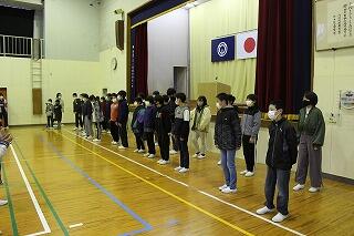 2校時体育館で、卒業生と4・5年生で卒業式練習を行いました。