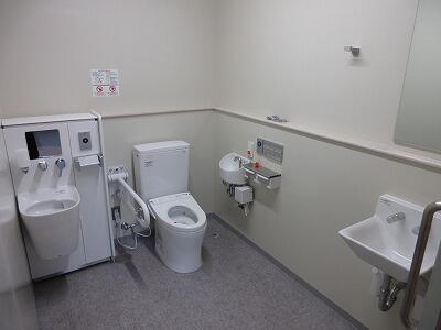 これまで物置として使われたスペースを仕切り、手前に多目的トイレが設置されました。最新の設備が整っています(オストメイト対応)。
