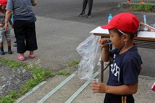 1年生は、2校時生活科の学習でした。内容は、なつとあそぼうということでシャボン玉づくりでした。どのようにしたらシャボン玉ができるか。大きなシャボン玉をつくるにはどうしたらよいか。シャボン玉について活動しながらいろいろなことに気付いていました。