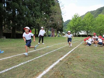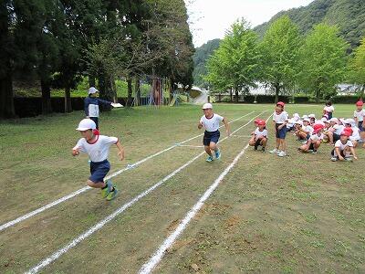 初めて挑戦する1年生も一生懸命がんばっていました。カーブが入るのでうまく走るのは難しそうです。これから、徒競走に加えてダンスや団技、ばんば踊り、開閉開式の練習などが本格的に始まります。