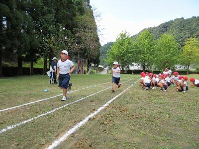 まずは徒競走の練習から始める学年が多いようでした。1・2年生の練習を見に行くと、2人ずつ走ってタイムを計っていました。赤白団を決める参考にもなるようです。