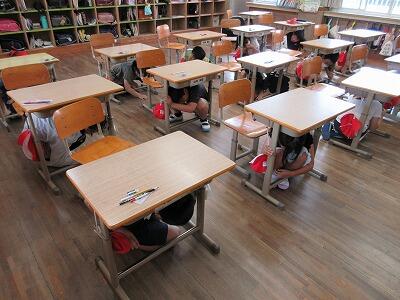 緊急地震速報が流れ、それぞれの机の下にもぐりました。頭を守り、机の脚をしっかりと持って揺れに備えました。地震がおさまったあと、大津波警報が発令されたという放送で全員が校舎3階へ避難しました。1・2年生は理科室、3・4年生は5・6年教室です。