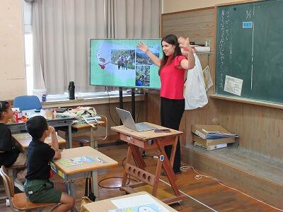 これから、週に1回のペースで北川小学校にきていただき、主に3~6年生の外国語の授業をサポートしていただきます。(給食時間には、全校児童に向けオンラインで自己紹介をしていただきました。)