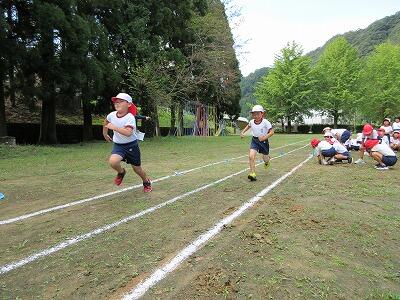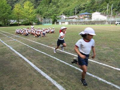 初めて挑戦する1年生も一生懸命がんばっていました。カーブが入るのでうまく走るのは難しそうです。これから、徒競走に加えてダンスや団技、ばんば踊り、開閉開式の練習などが本格的に始まります。
