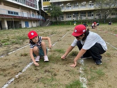 約3週間後に行われる運動会に向けて、いっしょうけんめい草を抜いていました。
