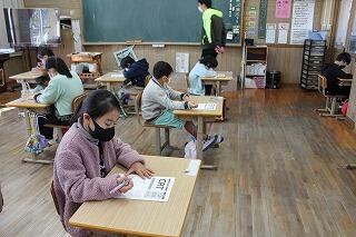 今日の2時間目、3時間目に学力テスト(標準学力検査)を行いました。5年生以外の1・2・3・4・6学年で実施しました。2時間目が、国語でした。はじめに、聞く問題をやってから漢字や読み取りの問題を解いていきました。3時間目は、算数でした。たくさん問題がありました。1年生にとっては初めての学力テストでした。みんな一生懸命考え解答していました。