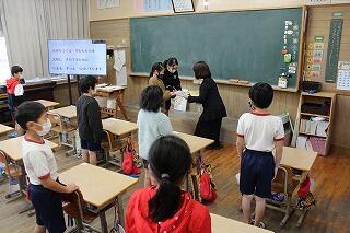 最後に、各学年から給食に携わっている方々に感謝の気持ちをいろいろな形でプレゼントを準備し、代表で栄養教諭の先生に受け取っていただきました。大変、感激されていました。