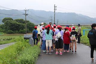 延岡警察署、国土交通省延岡河川事務所、県土木事務所、北川総合支所、市教育委員会、PTA役員、学校の関係者が集まり、校区内で通学路の危険箇所について協議と現場確認が行われました。
