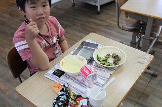 頭から食べた後、「こげている。」と言って食べるのを止めた低学年の子どもや「ちょっと苦いけどおいしい。」と言って食べている高学年の男子もいました。